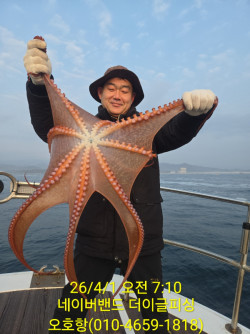 더이글 피문어출조는 손질,진공포장 무료로 진행합니다~더이글피싱 함선장입니다 오늘도 대왕피문어낚시 다녀왔습니다어제와 다르게 문어들이 얼굴을 쉽게 보여주지 않네요~진짜 정신건강에 해로운 낚시가 맞습니다.열한분 모시고 출항하여 2키로급 2마리, 5키로급 1마리, 1키로급 1마리 총 4마리 나와주었습니다수온이 너무 낮아 문어 활성도가 떨어진거 같습니다...아침에 너울이 심해 조사님들 멀미도하시고 정말 고생많으셨습니다 https://theeagle.sunsang24.com/ship/schedule_fleet/*** 고성 더이글피싱 예약 안내 ***예약문의 : 010-5372-4344오시는길 : 강원도 고성군 죽왕면 오호항홈페이지 : http://theeagle.sunsang24.com/